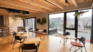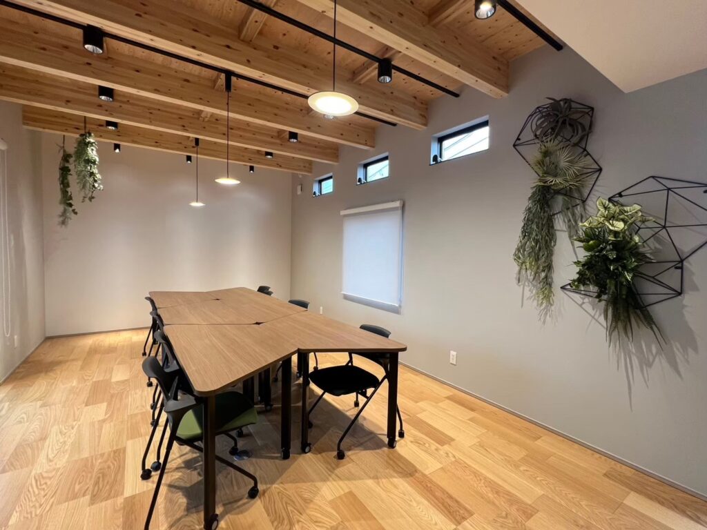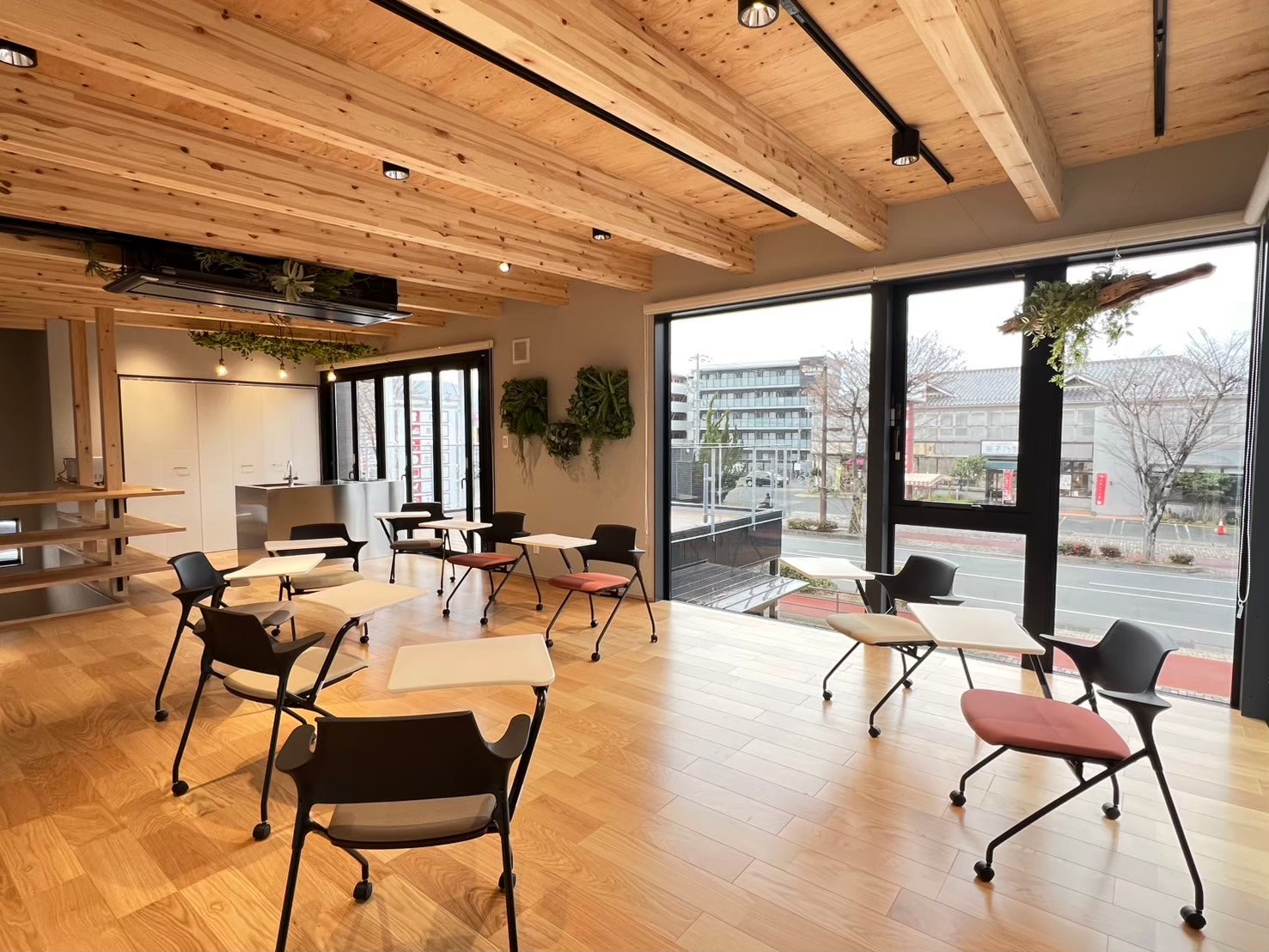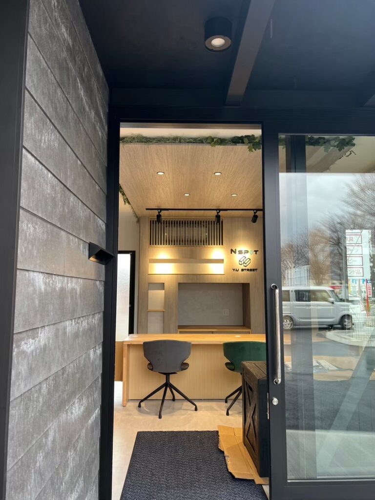 1Fは受付、ミーティングルーム、2Fは地域の大学生の為のコミュニティスペースとして活用の為